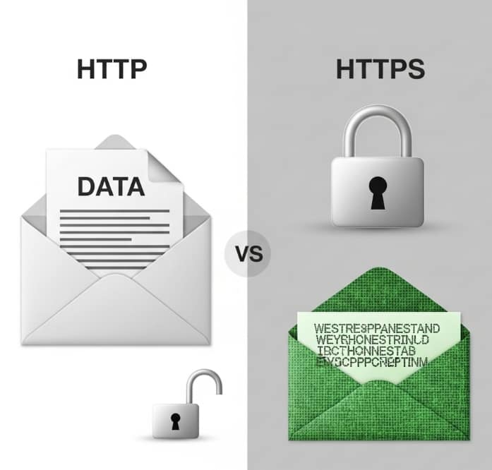 • HTTPS: Ahora, piensa en HTTPS (Protocolo de Transferencia de Hipertexto Seguro) como esa misma postal, pero metida en un sobre sellado con un candado súper seguro. Antes de que envíes tu información, se “cifra” o se “codifica”. Esto significa que se convierte en un montón de letras y números que no tienen sentido para nadie. Si un ladrón de información la intercepta, solo verá un galimatías incomprensible y tus datos estarán a salvo. HTTPS utiliza un “certificado de seguridad” que funciona como una identificación oficial para la página web, asegurando que te estás comunicando con el sitio real y no con una copia falsa.