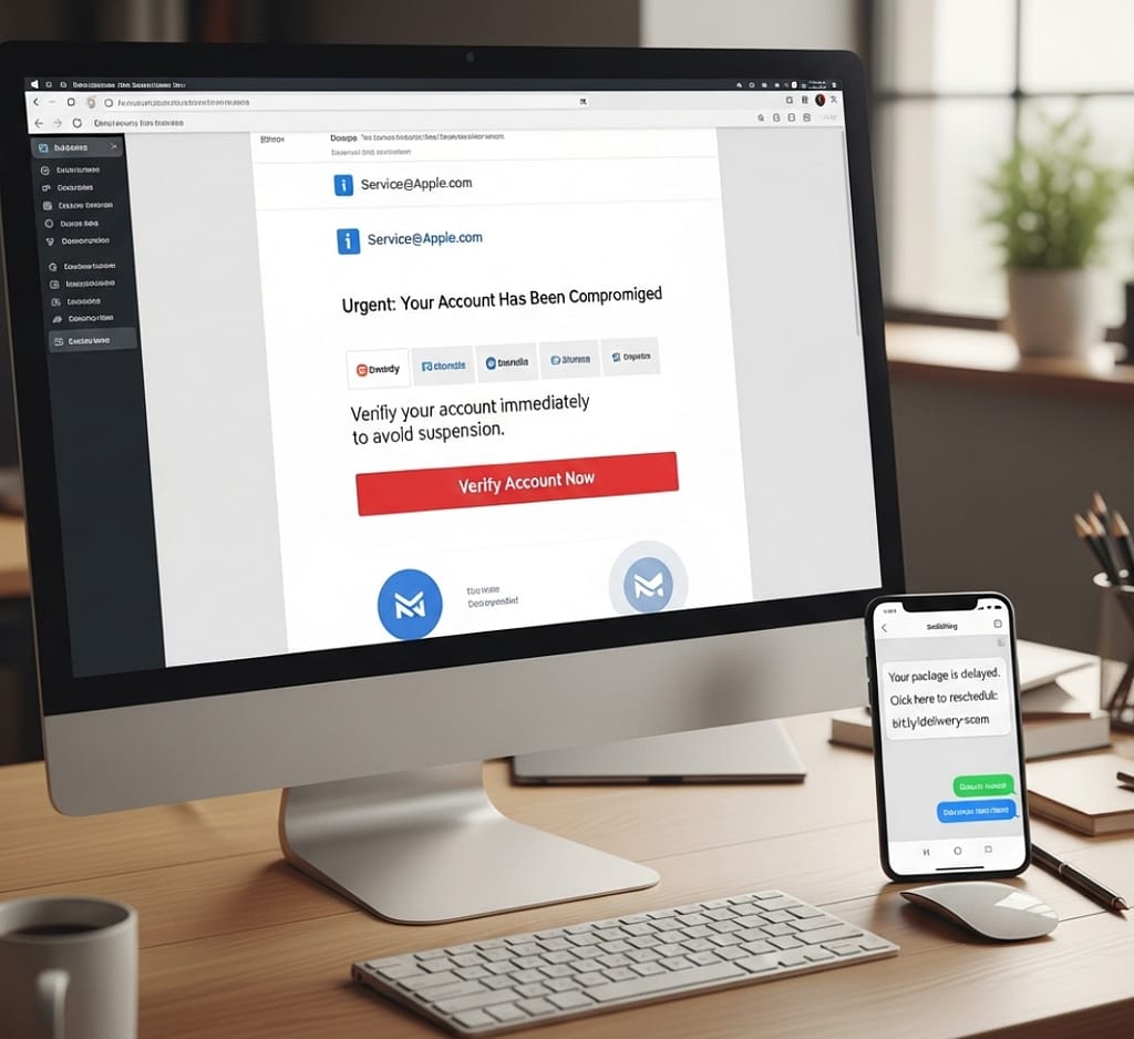 • Ejemplo típico: Un email que dice ser de tu banco, con un asunto como “Alerta de seguridad: Su cuenta ha sido suspendida temporalmente”. Dentro, un texto genérico y un botón que dice “Verificar ahora”.