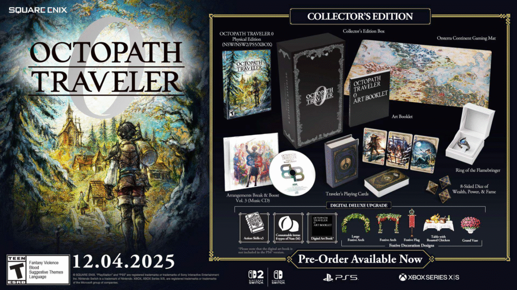 Square Enix anunció OCTOPATH TRAVELER 0 durante el Nintendo Direct del 31 de julio de 2025. El juego se lanzará el 4 de diciembre de 2025 para Nintendo Switch, Nintendo Switch 2, PlayStation 5, Xbox Series X|S, y PC (a través de Steam y Microsoft Store). También habrá versiones para Nintendo Switch original y PlayStation 4.